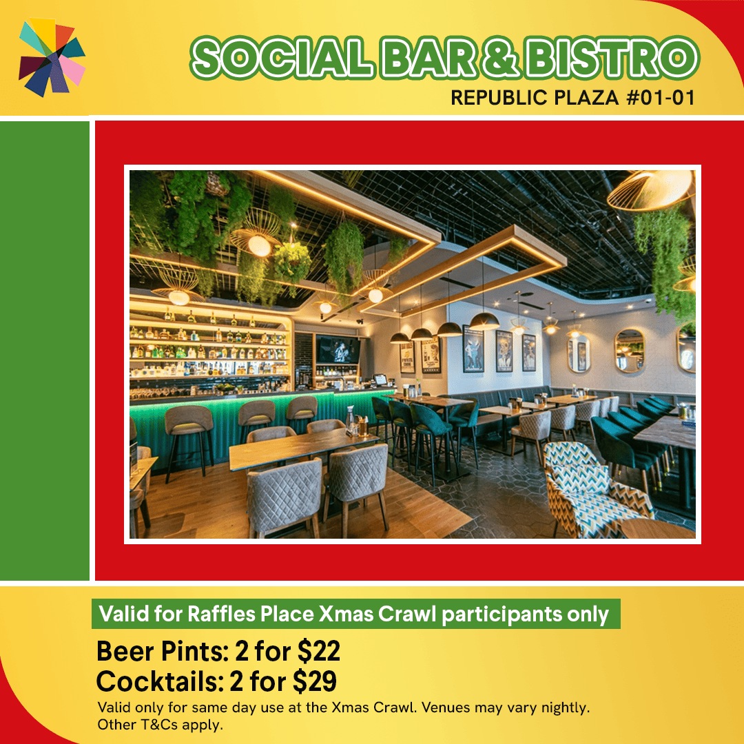 To get into the holiday spirit, we’re hosting our very first Raffles Place Christmas Crawl! Come join us as we carol our way through the Central Buzz District with the merriest social nightlife experience this Christmas!