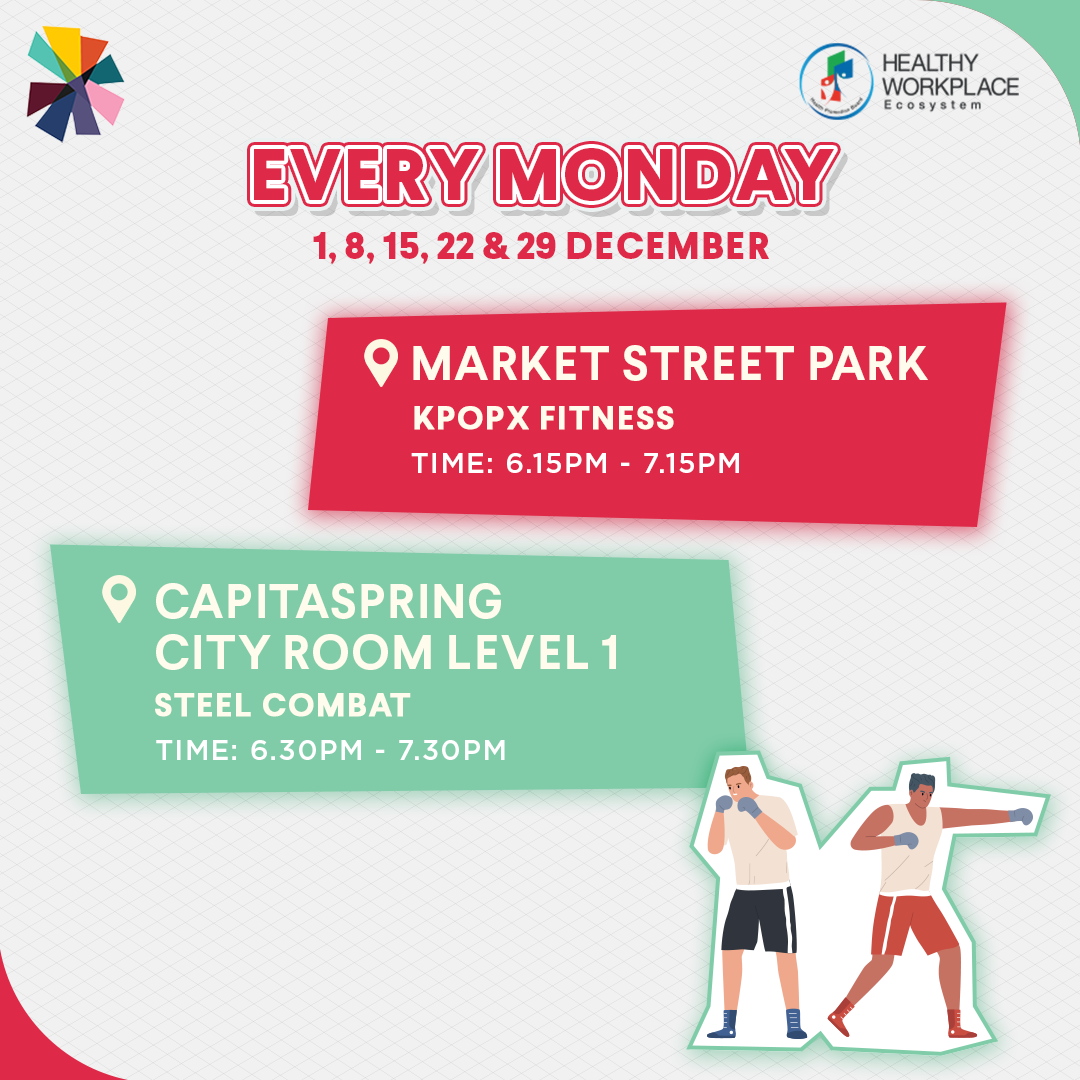 This December, keep strong with a wide-range of weekday workouts at Raffles Place!