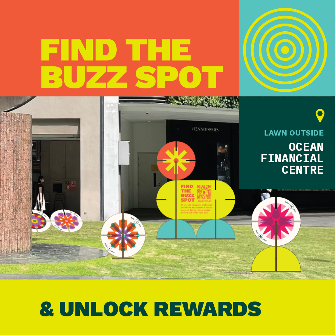 Head down to Raffles Place Park, where you can spot our physical game structures and start playing our Buzz Spot game.