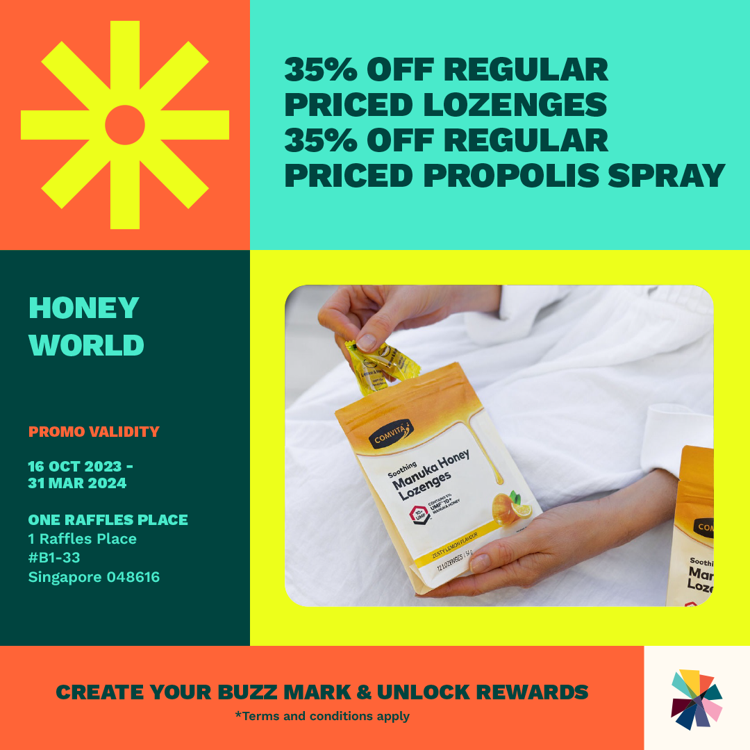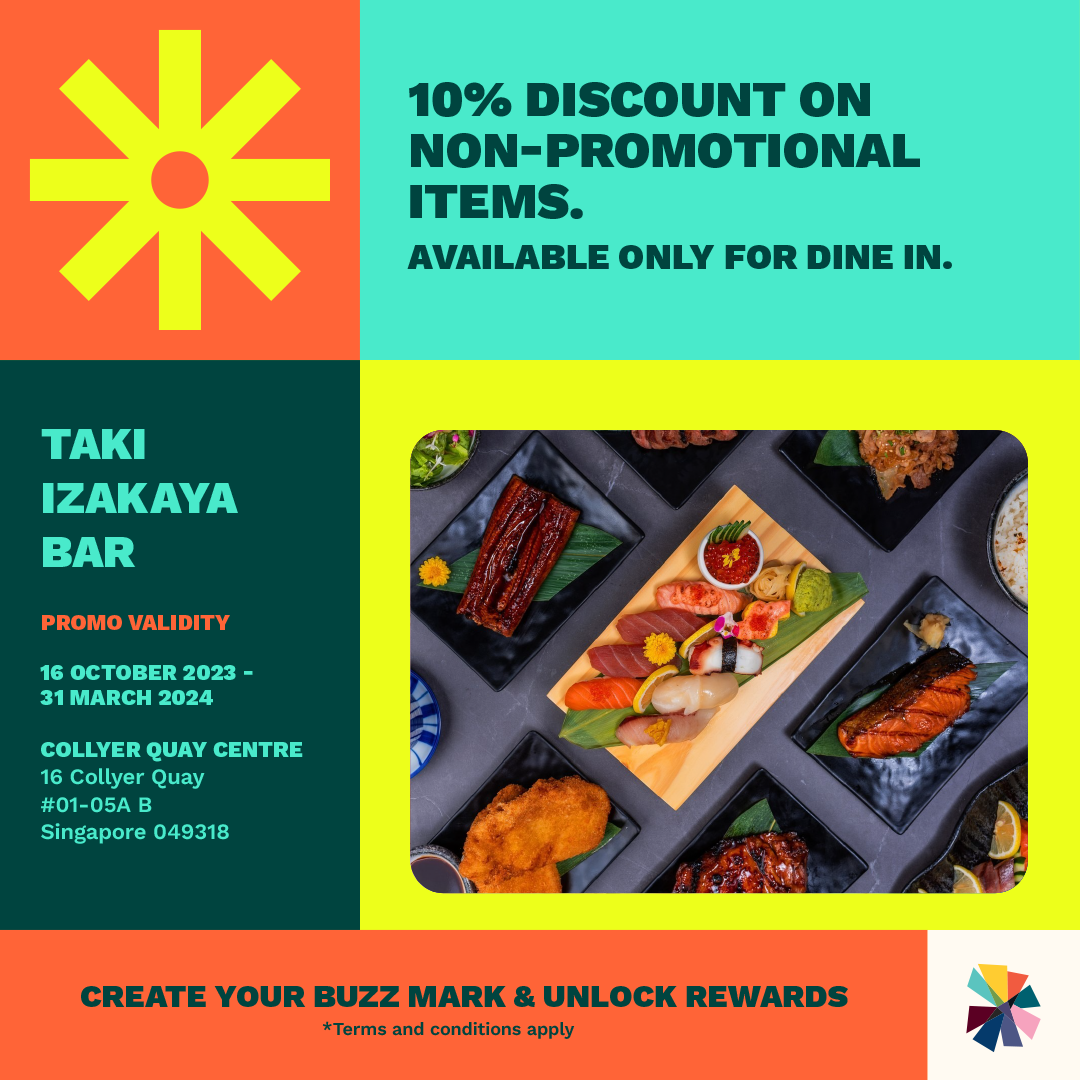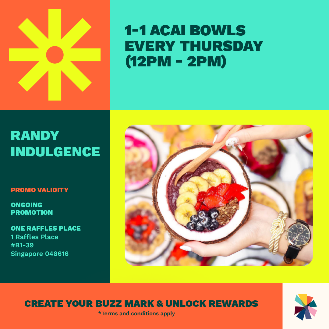 Find out where you rank among the personalities of Raffles Place, and redeem rewards along the way by flashing your own buzz marks to participating tenants.